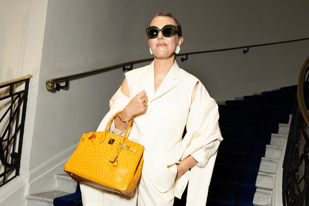 37-летняя звезда «Сплетницы» появилась на публике в черном костюме, состоящем из классических брюк и жилета. Кроме того, она надела остроносые туфли и дополнила свой образ сумкой в виде пиццы венгерско-американского модельера Джудит Лейбер. Известно, что стоимость изделия составляет 5,7 тысячи долларов (463 тысячи рублей).